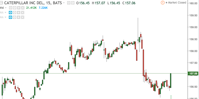 Screen Shot 2018-01-02 at 10.35.42 PM CAT was an excellent short opportunity at $158.67. CAT was on my watchlist from last Friday. CAT had 8 consecutive up days until Friday’s Close signaling for a potential retracement from prior highs.  Although it made an all time new high, it was short-lived and did not participate in the market rally. Above is a 15 minute chart beautifully displaying the stress free downside momentum. Due to this miss opportunity, this miss set the precedence for the rest of my morning.
